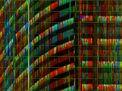 The picture on the left is a beat graph, which is one way of visualizing the beats, bars, and sections of a music recording. The horizontal lines on the right of the plot show that the plot is correctly synchronized using the right number of beats per minute in this case.