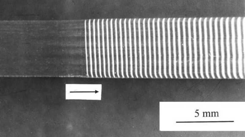 A number of papers have tried to investigate why this banding pattern happens, including some rather rudimentary mathematical models. However, all the mathematical models so far are wrong! The best bet so far appears to be the model by Toda (1994) (see also Toda et al 2002). These studies are limited to a draw ratio of λ=2, which is not realistic, whilst more recent attempts to generalize these models (e.g. Bazhenov 2011) do not conserve mass. I also have doubts over the accuracy with which Toda (1994) numerically solved their model.